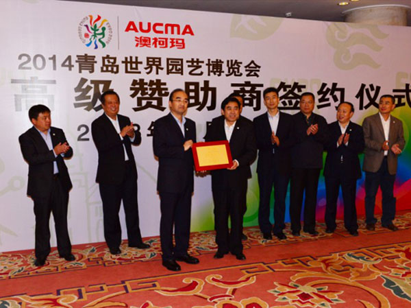 世園執(zhí)委會與澳柯瑪在青島府新大廈舉行2014青島世園會高級贊助商贊助簽約儀式。青島市政府副市長、世園執(zhí)委會執(zhí)行主任王建祥,向澳柯瑪頒發(fā)2014青島世園會高級贊助商紀念牌。