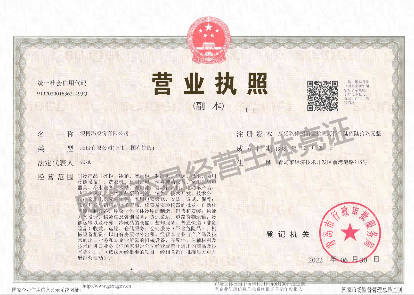 澳柯瑪網(wǎng)絡(luò)交易經(jīng)營主體亮證