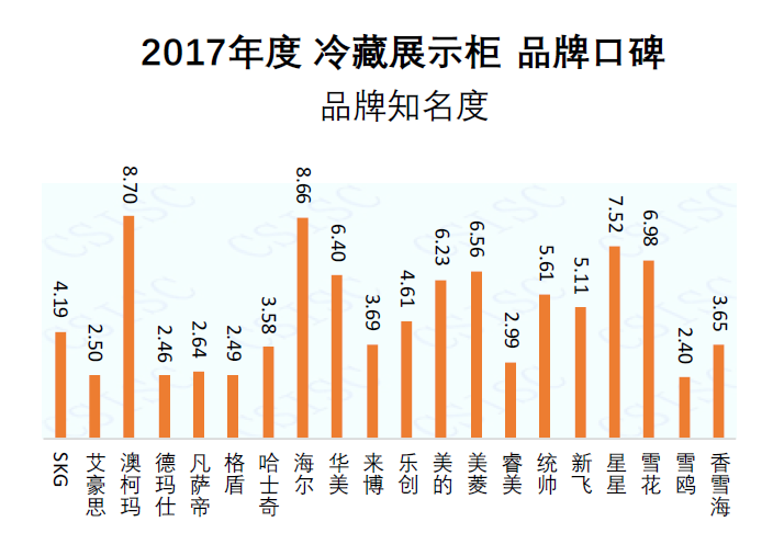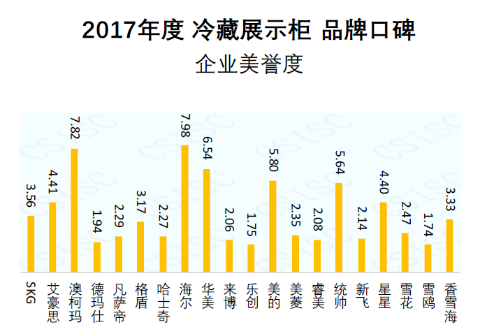 本期研究報告篩選了澳柯瑪、海爾、美的、星星、美菱等20個冷藏展示柜品牌作為研究對象,報告顯示,冷藏柜市場競爭日趨激烈,澳柯瑪、海爾、美的、美菱等品牌實力雄厚、產(chǎn)品創(chuàng)新能力突出,其口碑日益穩(wěn)定和上升。