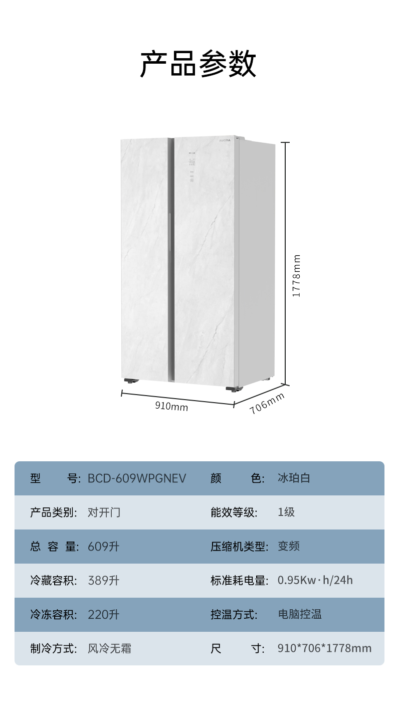 型號(hào):BCD-609WPGNEV(冰珀白)