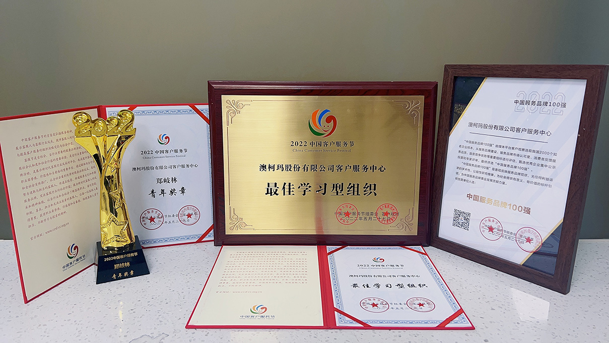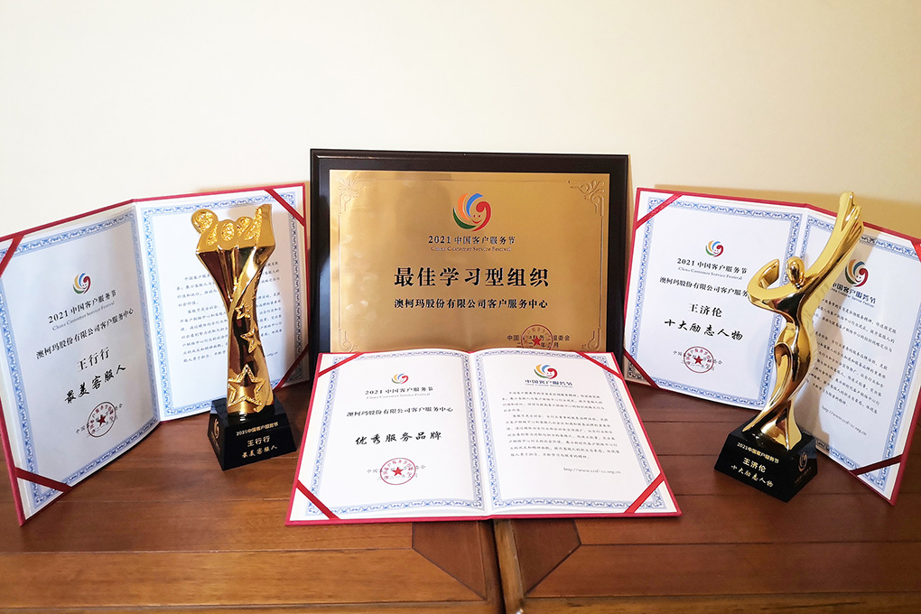 2021年澳柯瑪客服中心榮獲“優(yōu)秀服務(wù)品牌”證書